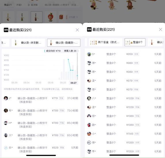 “根本抢不到,隐藏款‘小熊饼干’在得物上已经挂到929元了,但还有超3000人点击‘想要’。”资深潮玩爱好者张女士一边刷新手机页面,一边对记者感叹。她口中的“星星人美味时刻系列”,官方售价仅59元的盲盒,尚未正式发售,二级市场成交价已跃升至249元,整盒价格更是从354元飙升至1499元。