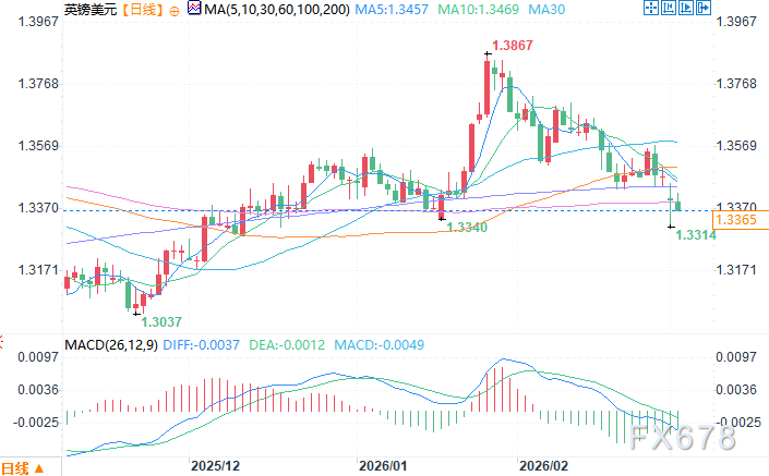 英镑兑美元日线图 来源:易汇通北京时间3月3日14:04 英镑兑美元 报 1.3355/56。